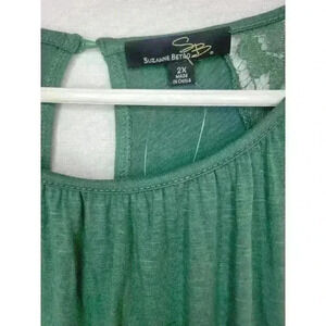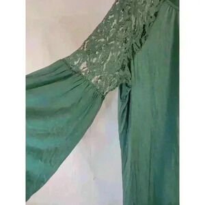 Suzanne Betro Top Womens Plus 2X Green Lace Blouse Bell Sleeve Keyhole Boho New