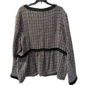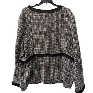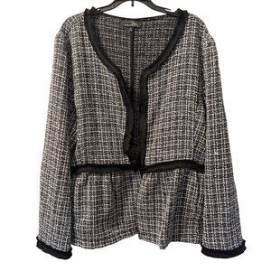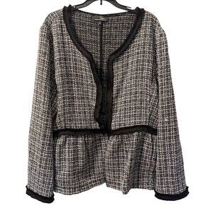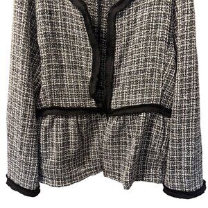 Suzanne Betro Tweed Open-Front Jacket Black & White Sz 2X Polyester blazer