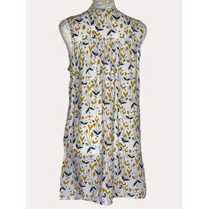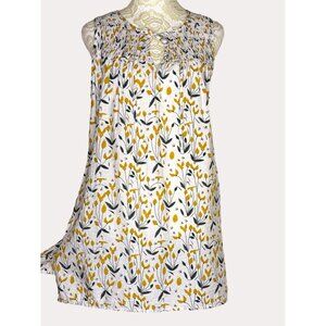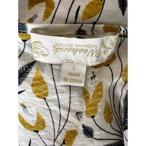 Suzanne Betro Weekend Smocked Top Blouse Floral Gold Blue L bv
