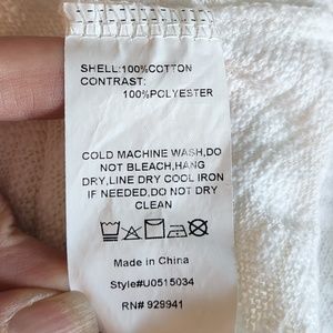 Pretty 100% cotton sweater with lace decor (100% polyester) around the collar and bell sleeves in 1X
