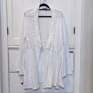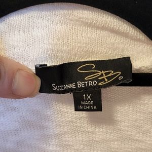 Suzanne Betro White Lace-Accent Open Cardigan - 1X