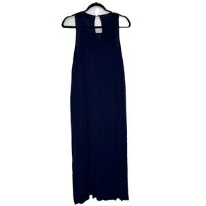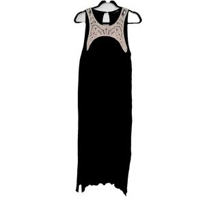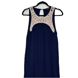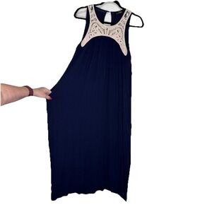Suzanne Betro Women 1X Dress Maxi Crochet Lace Bosom Casual Navy Flowy Lined