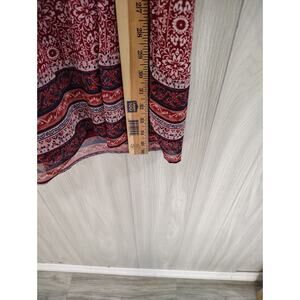 This beautiful dress by Suzanne Betro is a perfect addition to your wardrobe. The dress features a vibrant red color with a lovely floral pattern that adds a touch of bohemian style to your look. The V-neckline and bell sleeves give the dress a feminine touch, while the tasseled detailing adds a fun and unique touch.