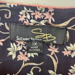 Suzanne Betro Women's Cable Knit Mixed Media Sweater Womens 1X Pink Blue