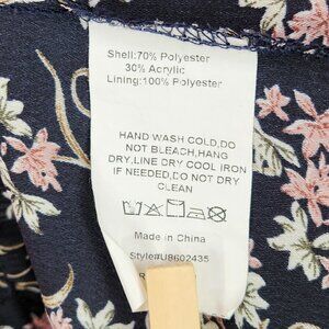 This top is in excellent condition. Very clean. There is one really tiny spot on the back that I did not try to clean. Outer shell is pink cable knit sweater, lining is dark blue floral polyester. The sides of the liner have ties below the sweater.