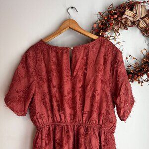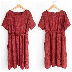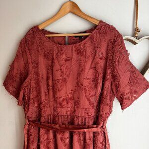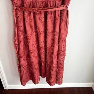 Suzanne Betro Womens Plus Size 2X Textured Self-Tie Ruffle-Hem Midi Dress Rust Pink