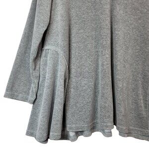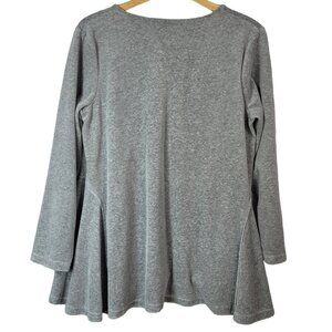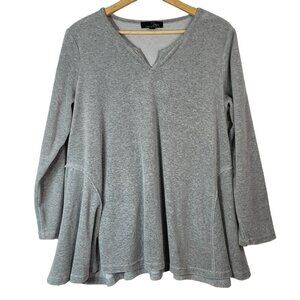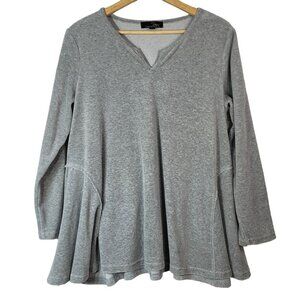 Suzanne Betro Womens Pullover Top Gray Large V Neck Soft Flare Hem Long Sleeve