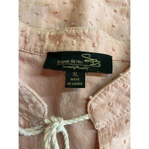 Suzanne Betro Y2K Peasant Top XL Pink Lace Trim Tassel Tie Neck Boho Cottagecore