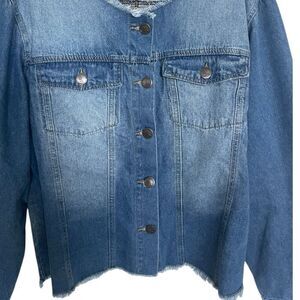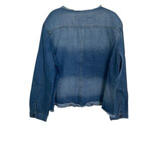 Suzanne Betro blue Jean denim jacket Size 3X Frayed edges Unique Shading