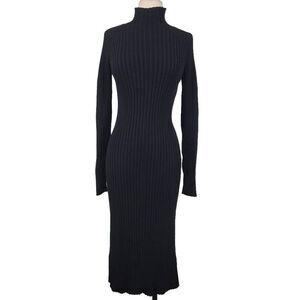 Suzanne Rae Black Knit Sweater Dress Sz XS Ribbed Mock Neck Long Sleeve Italian