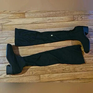 Boots in great condition, over the knee stretch jersey, square toe, 2" broad wood heel, inner zipper for ease