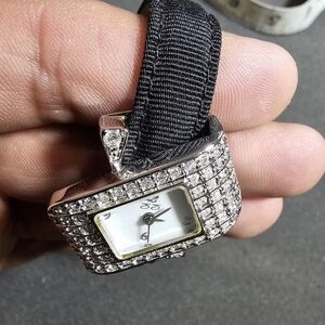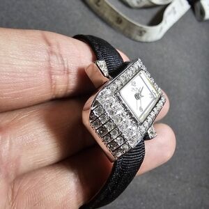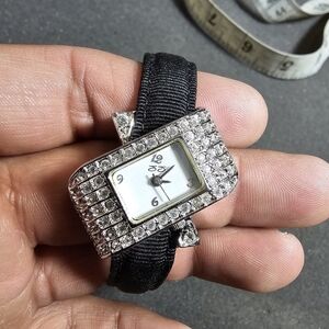Suzanne Somers Ladies Crystal Encrusted Oblong Silvertone Quartz Watch Working s