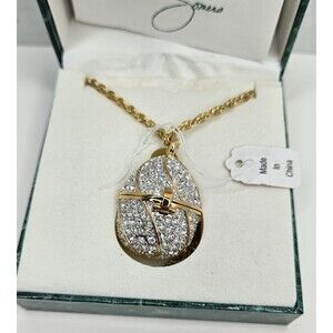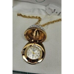 Suzanne Somers Pave Rhinestone Egg Gold-Tone Necklace Watch In Box. Watch needs a battery. Please note pictures for condition and further information