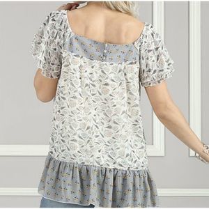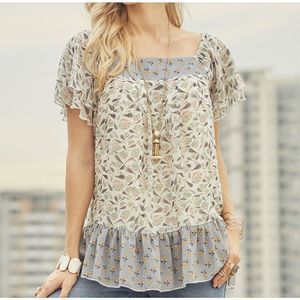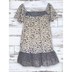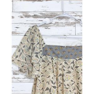 Suzanne Betro Boho Ruffle Floral Pheasant Square Neck Tunic Top Size Small