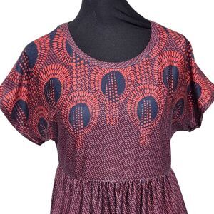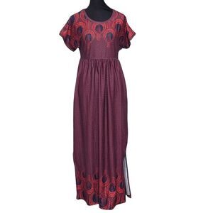 Suzanne Betro Maxi Dress Size Small Red Blue Short Sleeve Knit Casual Stretch