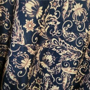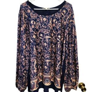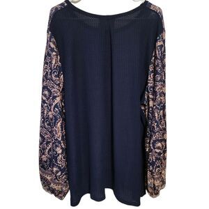 This blouse is beautiful, but definitely oversized for a Medium, blue and gold paisley, waffle knit back, balloon sleeves
