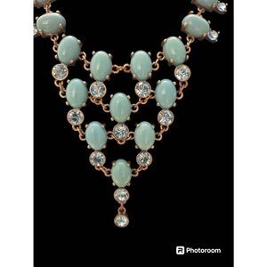 This stunning Suzanne Somers necklace is a must-have for any fashion-forward woman. The unique design features a bib style with an adjustable length, making it perfect for any occasion. The necklace is made of high-quality alloy metal and features a beautiful turquoise crystal stone in a prong setting.