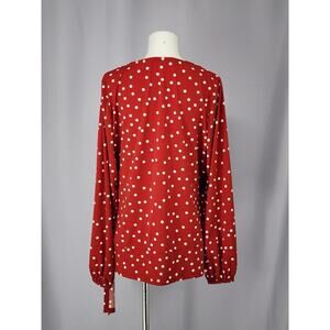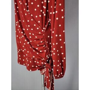 Suzannegrae Shirt Womens Large Red White Polka Dot Wrap Front Tie Side Top