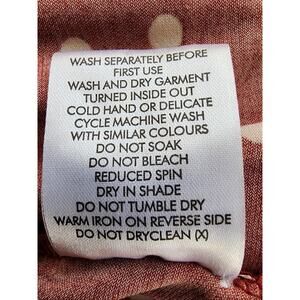 Care (per tag): Wash separately before first use, wash and dry garment turned inside out, cold hand or delicate cycle machine wash with similar colours, do not soak or bleach, reduced spin, dry in shade, do not tumble dry, warm iron on reverse side, do not dry clean.