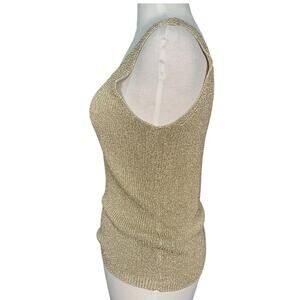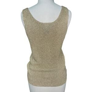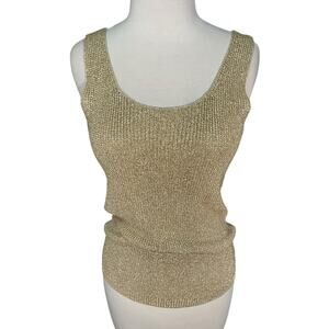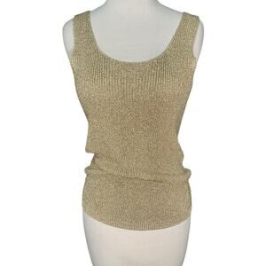 Suzelle Vintage Gold Metallic Knit Tank Top Size Med Sleeveless Evening Party