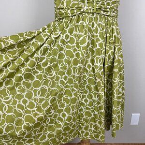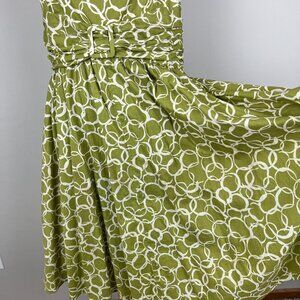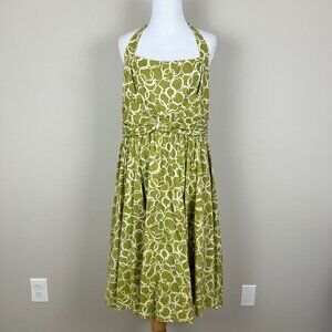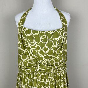 Suzi Chen Maggy Boutique Dress 14 Green Geometric Halter Pleated Fit Flare