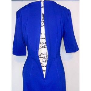 Suzi Chin Bodycon Sheath Dress Size 8 Blue White Color Block Pockets Maggy