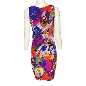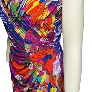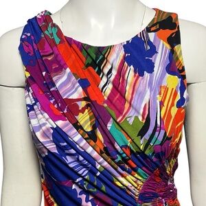 Suzi Chin Colorful Abstract Print Dress Ruched Stretchy Knit Jersey Size 6