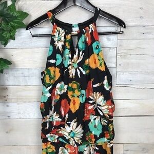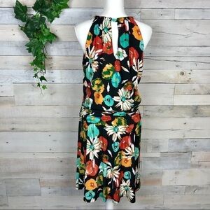 Bright Floral Keyhole Sleeveless Blouson Dress