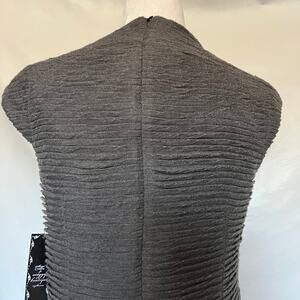 Gray Suzy Chin for Baggy Boutique Pleated Cap Sleeve High Neck Midi Sheath Dress