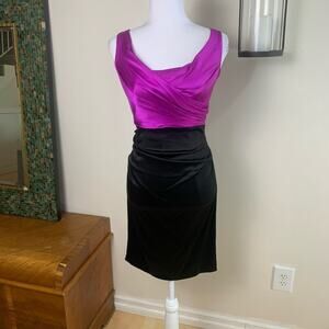 Suzi Chin Maggy Boutique Sz 6 Combo Sheath Dress Fuschia Black Silk Cocktail