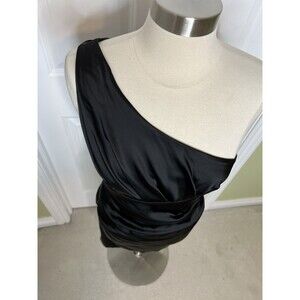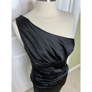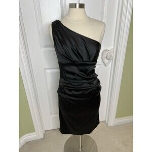 Suzi Chin for Maggy Boutique Little Black Dress One Shoulder Ruched Size 8. Pre-owned condition. No stains, snags, or holes. Pit to pit measures 16 length from top of shoulder to hem 38. Comes from a smoke free environment .