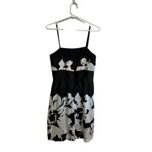 Suzi Chin for Maggy Boutique white/black silk dress size 4. Adjudtable spagetti straps and silk tie waist sash. Fully lined. See photos for floral print design.