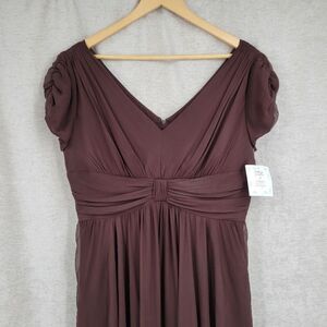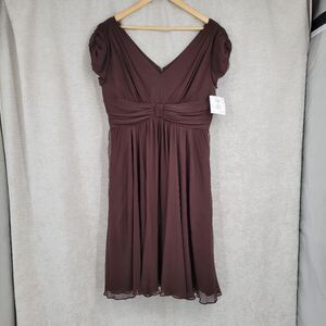 Suzi Chin for Maggy Boutique 100% Silk Chiffon Midi Dress Chocolate Brown NEW