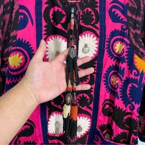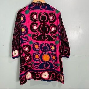 Suzi Click Floral Embroidered Pink Aztec Native Pink Tribal Jacket OS