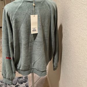 Suzi Kondi Women's S Oversized Velour Crewneck Sweatshirt Green Comfy Loungewear