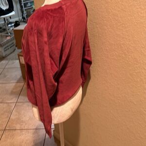 Suzi Kondi Women's XS Saba Raglan Velour Crewneck Pullover Sweatshirt Maroon Red