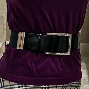 Material & Color: patent leather on the front and black elastic with Silver buckle