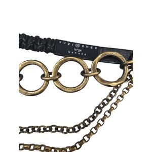 Suzi Roher Leather Chain Belt. 3 layer chain/ circle metal detail. 34 inches. In great preowned condition. With dust bag.