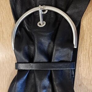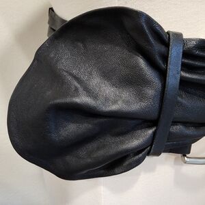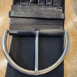 Suzi Roher Leather Stretch Black Belt w/Silver Horseshoe Buckle size Small Plus