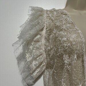 Style: Sheer, dramatic ruffle sleeves, delicate, coquette, romantic, fairycore, enchanted