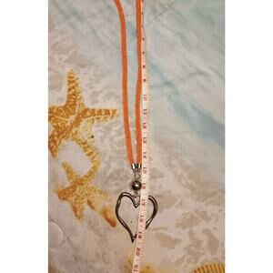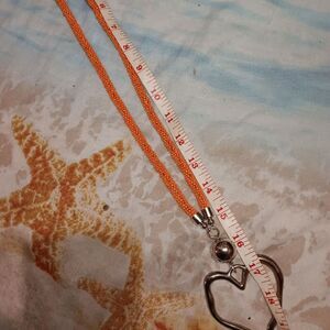 Suzie Blue Long Orange Beaded Necklace With Large Metal Heart (2.5"x3")