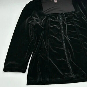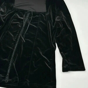 Suzie Couture Black Velvet Satin Square Neck Top Blouse Women's Petite Medium