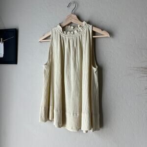 Suzie Kondi Cream Textured Cotton Ruffle High Neck Sleeveless Top Size Small