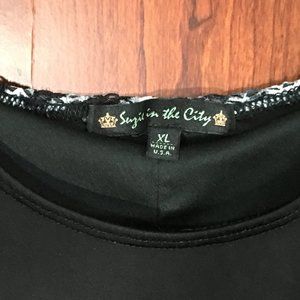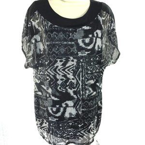 Suzie in the City XL Abstract Print Top Blouse Open Knit Mesh Lined Black White