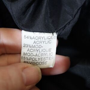 Crafted in a plush fuzzy fabric with an eye-catching blue spotted pattern, this opera-length coat closes with hook clasps and flows to about 52″ long. Labeled size “1” (vintage vanity sizing), but please use measurements — flat chest 24″ — best fits approximately Large/XL. The broken bar tag inside adds authentic vintage character without affecting wear.