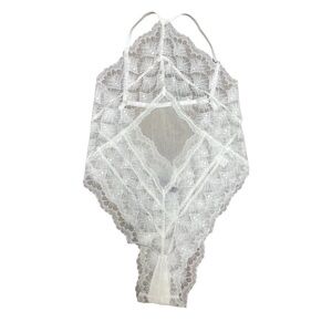 Suzy Black NEW Ashley Lace & Mesh Bodysuit in Ivory Size Large