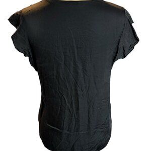 Suzy D Top Sz S Black Flutter Sleeve Wanda Satin Wardrobe Staple Capsule Classic