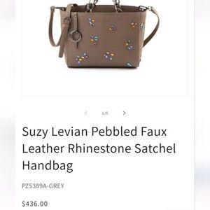 Suzy Levian Pebbled Faux Leather Rhinestone Satchel Handbag NWTs 2 COLOR OPTIONS