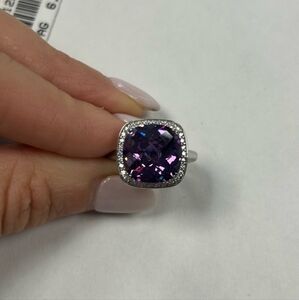 🔹️Suzy Levian🔹️ Sterling Silver Purple and White Cubic Zirconia Halo Ring