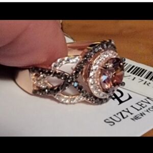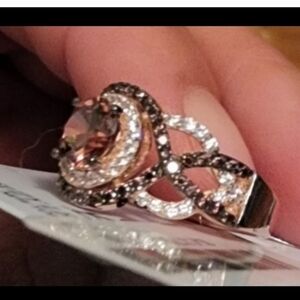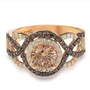 🔹️Suzy Levian🔹️Rose Sterling Silver Brown Cubic Zirconia Crossover Bridal Ring
